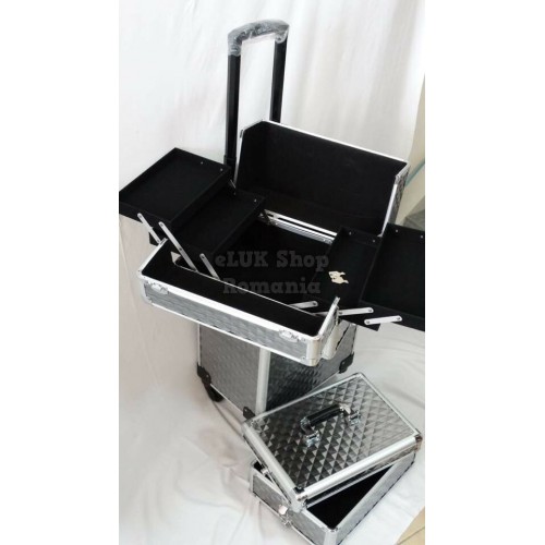 Troler Make -Up si/sau Frizerie model Valiza rigida, spatioasa, cu sistem trolley,