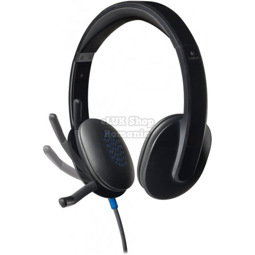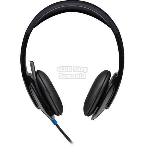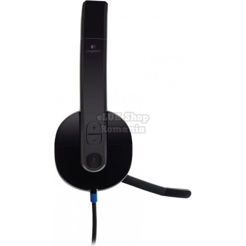 Casti logitech h540 cu fir standard utilizare multimedia call center microfon pe brat conectare prin usb 2.0 negru
