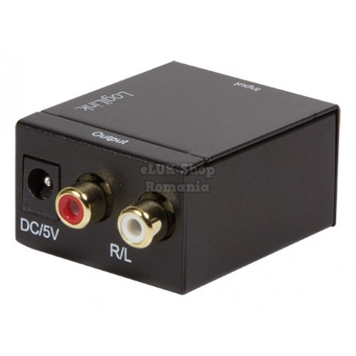 Specificaţii Convertor audio logilink intrare: 1 x toslink 1 x coaxial iesire: 2 x rca 24-bit 96khz alimentator extern 5v / 1a black