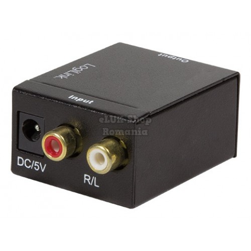 Convertor audio logilink intrare: 2 x rca iesire: 1 x toslink 1 x coaxial 48khz alimentator extern 5v / 1a black