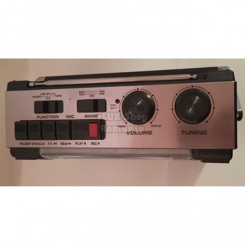 | Functii | Radio multiband AM / FM, Antena telescopica, Cititor USB si card SD cu citire MP3, Casetofon cu caseta, Microfon incorporat, Sistem de oprire automata, |