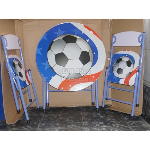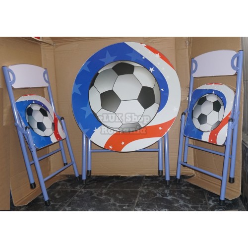 Set Masa cu doua scaune,pliabile pentru copii,Rotunda,fotbal