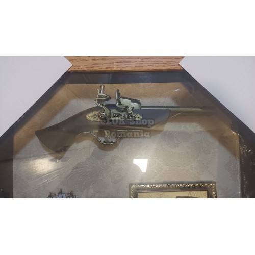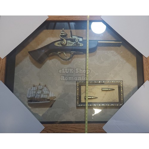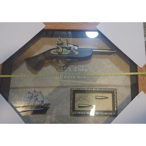 Descriere Tablou Panoplie arme 1 pistol 2 gloante si 1 barca