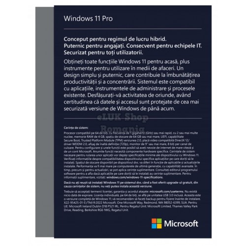 Specificaţii Win 11 pro fpp p2 32-bit 64-bit ro usb